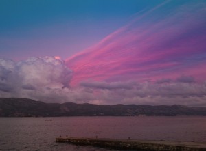 momenat je bi upečatljiv jer sunce je bilo na zapadu a na istoku obojalo samo visoke oblake. ja san tu vidi priču o tragu meteora koji će se uz vatre pojavit oko 5 otprilike…