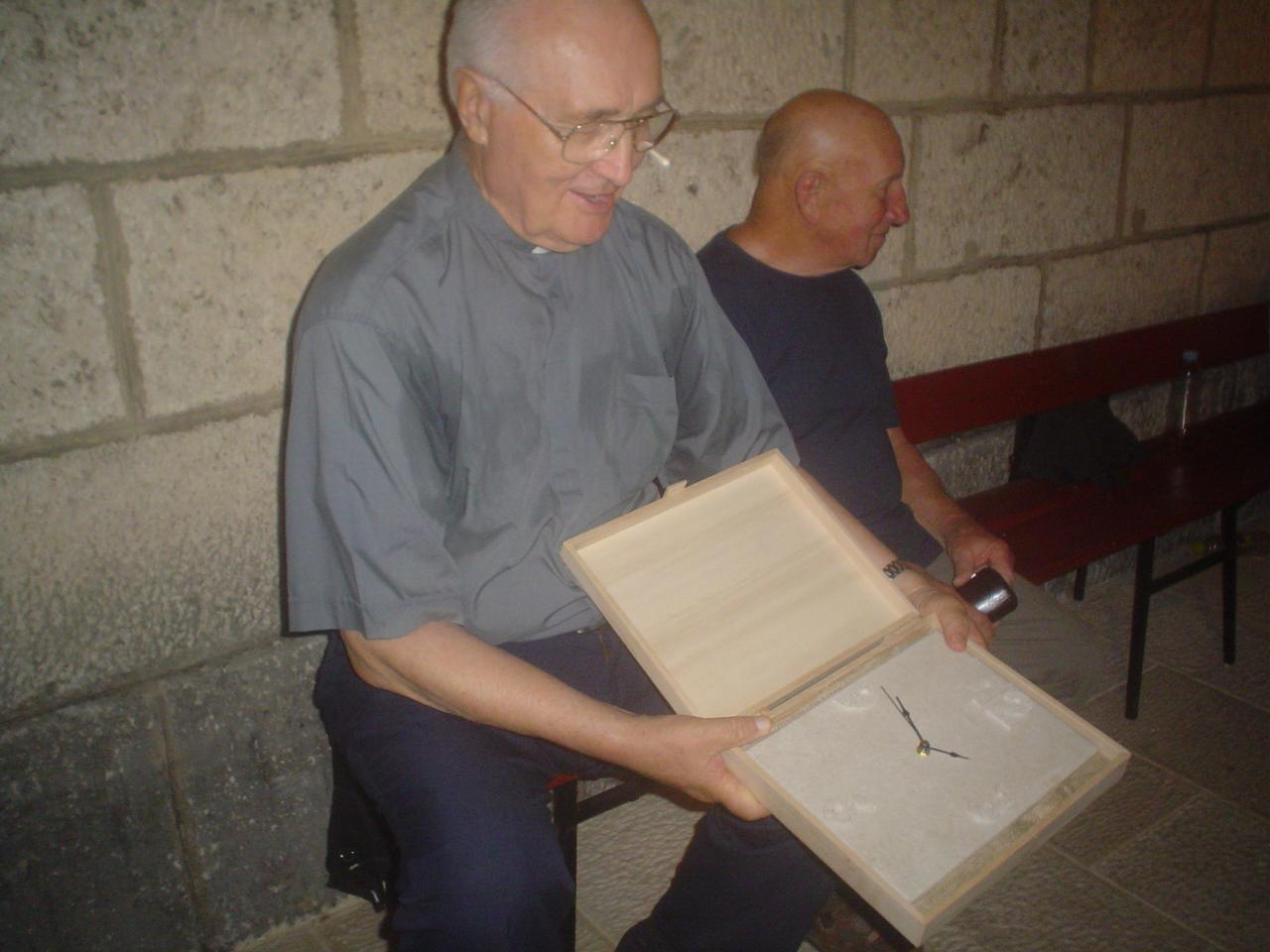 I na kraju koncerta ono što je svaki pratitelj očekivao u vlastitoj intimi,a otkrio je Roko Markovina riječima :UZ humanitarni koncert,zaslugom čovjeka u čiju čast, na oproštaju od Lumbarde i izvodimo naš koncert, dragog nam župnika don Pera Butigana koji nakon 21 godine upravljanje župe svetoga Roka odlazi u mirovinu i napušta Lumbardu. Idemo zajedničkom pjesmom svih večerašnjih sudionika pozdraviti don Pera. I čuli su se vrli glasovi,zatim i tiše u pozadini Kroacijo iz duše te volim,i Sveti Roko čuvaj našu valu,svi su pjevali,a onda muk,kada je Marija Kriletić,tajnica zbora Sveti Roko poljubila dragog svećenika i uručila mu poklon sat-suvenir s posvetom od vjernika Lumbarde. Don Pero je zahvalivši,veselo upitao : Je li ovaj sat pokazuje Lumbarajsko vrijeme,na što mu je Roko Markovina odgovorio: Točno tako don Pero, jer po Lumbarajskom vremenu Vi nikada niste zakasnili u molitvi i pomoći župi Svetoga Roka.