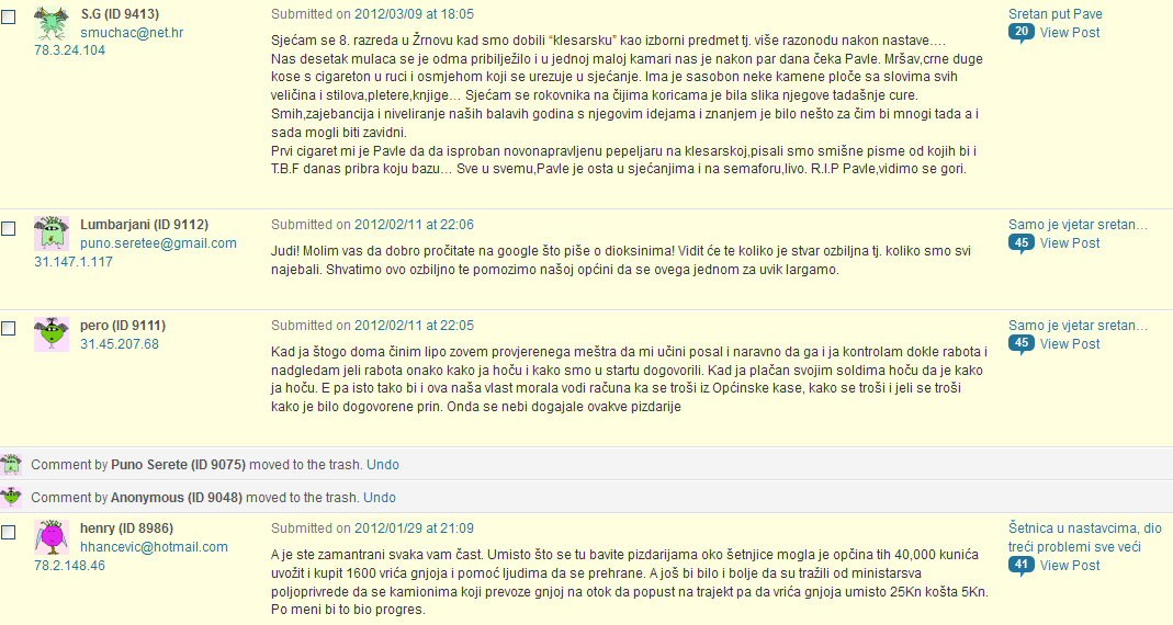 Nekako baš kada je bila zadnja akcija Lumpara, napravili smo i mi malo proljetno čišćenje portala, a tu je onda možda nastala malo veća šteta jer smo izgubili sve one lajkove za našeg Paveta. Samo da se zna bilo ih je rekordno 50 samo na našem portalu. Raštimala nam se malo i funkcija za pokazivanje slika što ćemo riješit uskoro nadamo se. Sa druge strane smo u jednom od “foldera” iliti košuljica našli određen broj komentara koji su zbog nekog razloga zapeli na filtriranju.