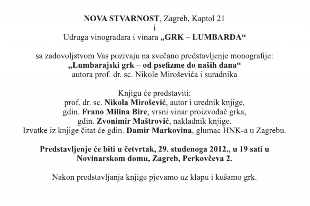 Monografija “Lumbarajski Grk” predstavlja se u Zagrebu