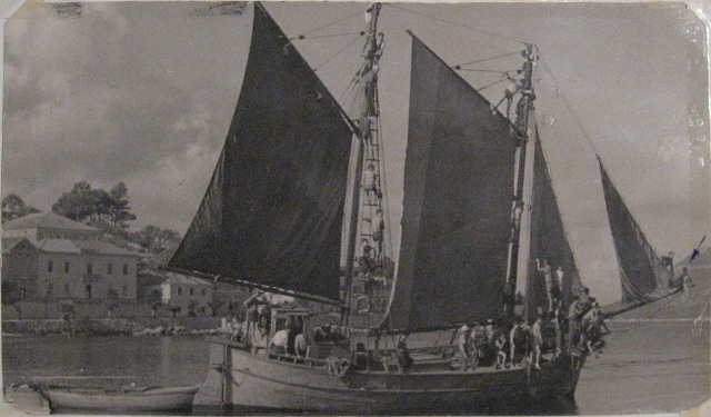 evo jedna fotka trabakula Mali Matij, i to di “nastupa” u filmu Crni biseri, snimanom na Badiji i u Korčuli 1958. godine.