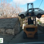 Al nedaju se olupine samo tako. Kamion prevelik , ulice uske. U pomoć priskaču i domači. Željko Jurjević dolazi s viljuškarem , prezimenjak Vedran dovozi kamiončić.. Pa Tomo Vinković je spasio situaciju.. Nije to prezime s Lumbarde.Ime je to traktorčića stvorenog za izvlačenje renolčeka i jugića iz maslinika. Čuda radi taj stroj . Al i tehnika zna zakazati , al nikada Jurica Radoš.. Mobitel ne iskapča ni kad roni… A da njega nije bilo još bi mi Grka pili i na otoku bili , al to je za neku drugu priču…