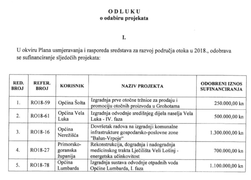 Cijeli dokument pogledajte tu: Odluka o odabiru projekta