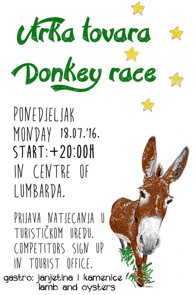 Kako ide to s utrkom tovara? Jednostavno posjetiš ured TZ-a Lumbarda ili Ratkota netom prije utrke. Za 50kn dobiješ majicu s motivom Lumbarajskih užanci i misto u sedlu na tovaru. Jedino što nema sedla. Gledaj da nisi pretežak natjecatelj. Ne mislimo … [Continue reading]