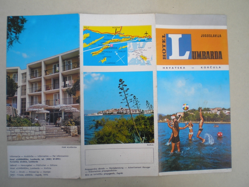 natira san starega Lujota da pretraži svoju bogatu turističku arhivu i da mi naje dva stara prospekta hotela Lumbarda, za koja san zna da hi posjeduje. Vrati ćemo se i 40 godina unase da vidimo same početke, sa već legendarnega, hotela u Lumbardi. Nadan se da će i ostali lumbardanetaši uživa u starin motivima Lumbarde, ko što ja sa guštan gledajući i čitajući ovaj mali dil povisti turizma u Lumbardi.