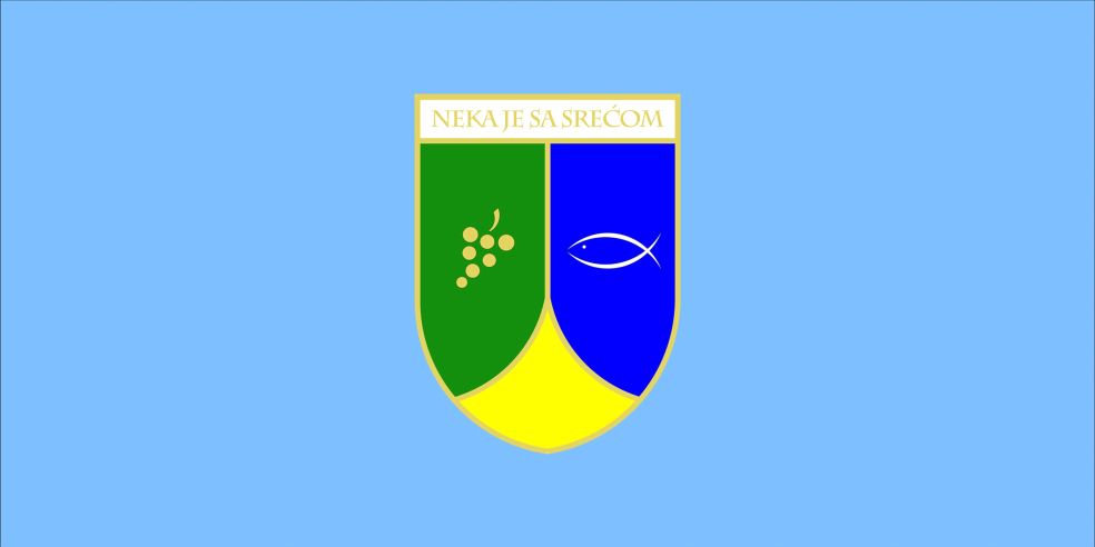 7. Boji je od službenog grba, samo bi malo povećao bijelo polje da ima više bjeline ispod natpisa. Treba napraviti zastavu, pa postaviti na granicu. Plaćam otiskivanje na platnu.
