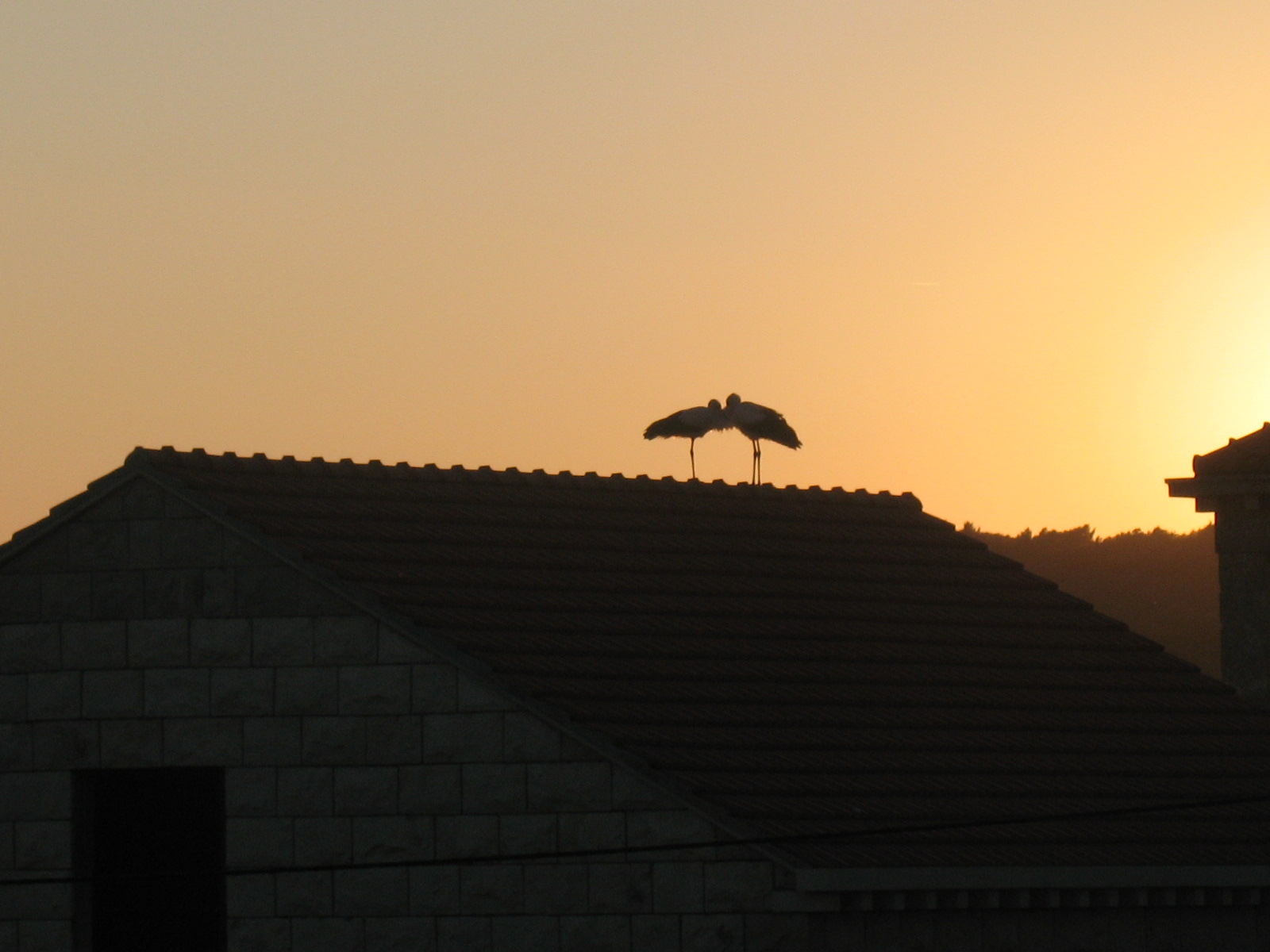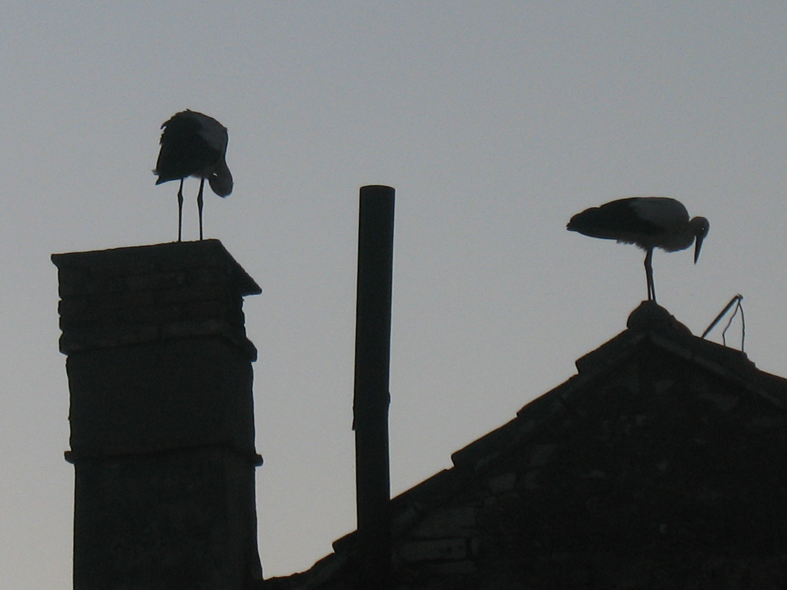 Evo zaljubljenih roda na krovu moga susida. Stigle su sinoć i osvanule jutros.